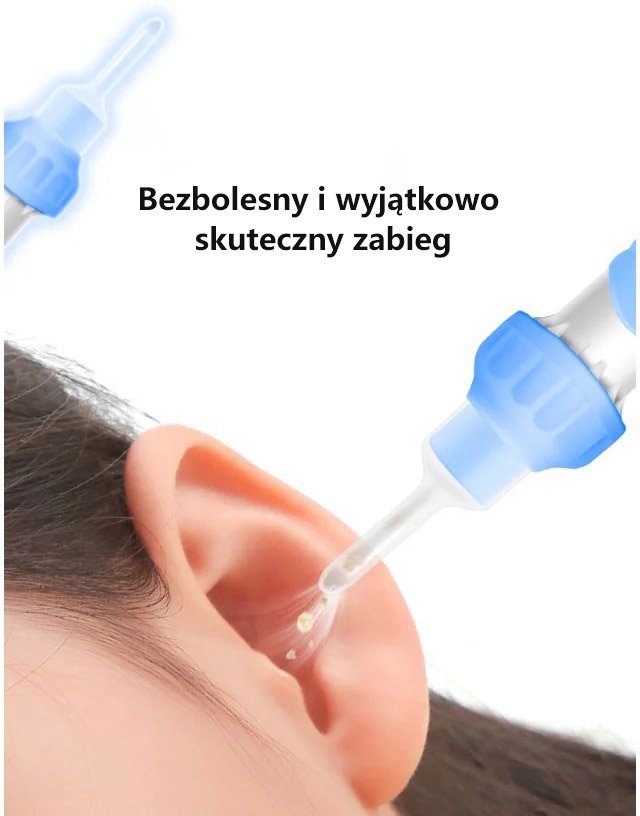 Błyskawicznie odsysa zanieczyszczenia z wnętrza ucha i gromadzi je w zbiorniku.
