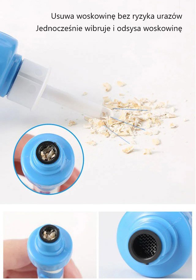 Moc urządzenia pozwala na łatwe zebranie woskowiny z uszu. Państwo cieszyć się czystością w dowolnym miejscu i czasie.