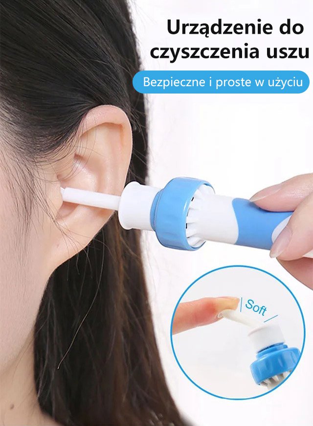 Delikatnie wibruje i oczyszcza uszy z zanieczyszczeń oraz wilgoci.