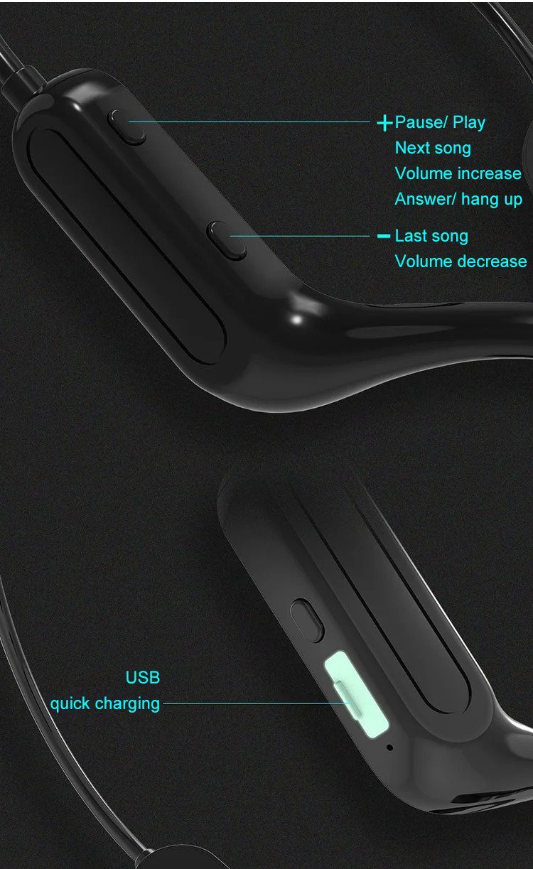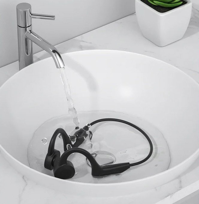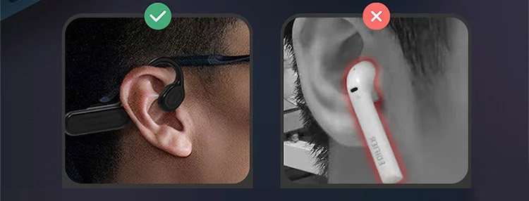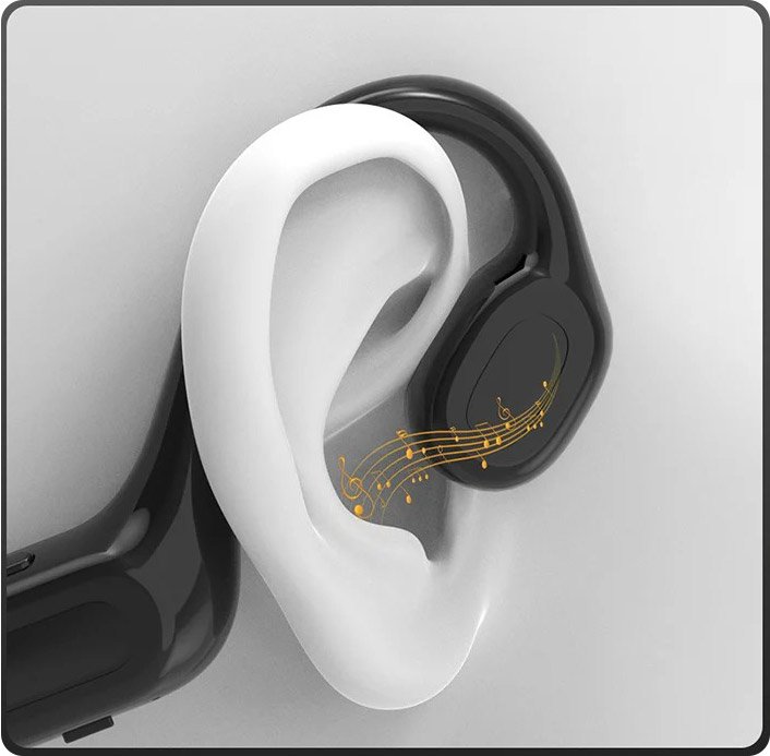 Słuchawki wykorzystują technologię przewodnictwa kostnego, czyli przekazywanie drgań generowanych przez fale dźwiękowe przez kości twarzy (szczęki i policzkowe) bezpośrednio do ucha wewnętrznego.