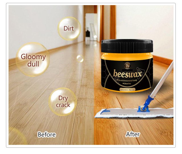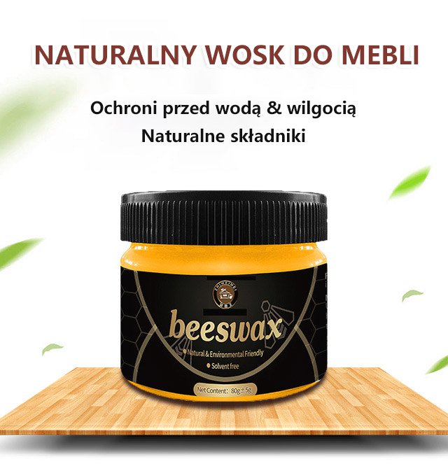 uniwersalny wosk pszczeli przyprawowy do drewna nie tylko czyści i poleruje drewniane meble, ale także poleruje meble z drewna tekowego, antyczne lub nowoczesne, stoły, biurka, krzesła, podłogi, ławki i inne.