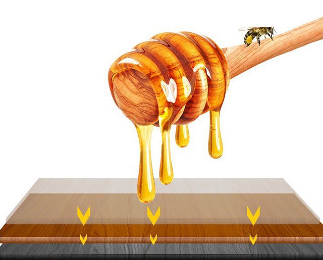 Naturalny wosk pszczeli pomaga woskowi pszczelemu wnikać w drewno, pomaga utrzymać nawilżenie drewna i zapobiega temu od wysychania i pękania.